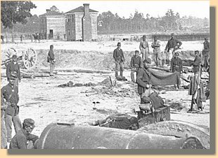 Illustration from the book, Civil War in Pictures: From the Drawing Boards of the Newspaper Artists who Recorded the Conflict. The caption reads, "The Army of the Potomac, burying the dead at Fair Oaks Station, VA." |