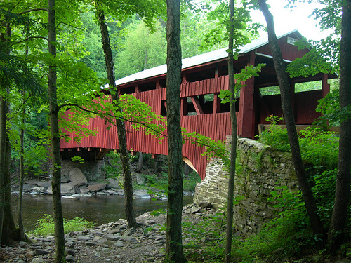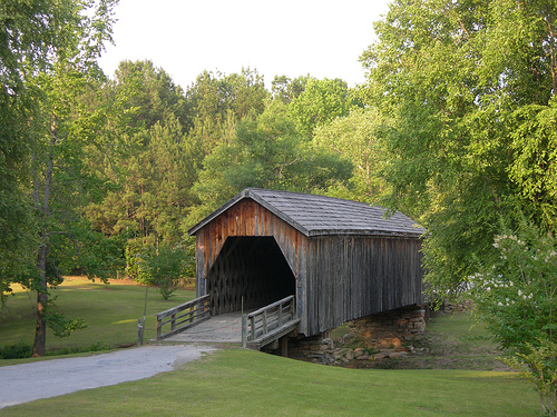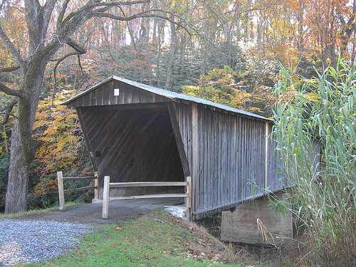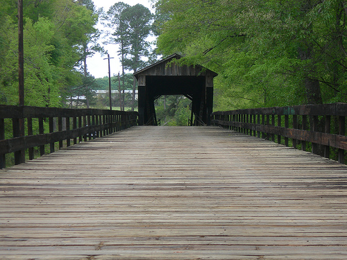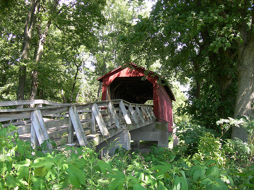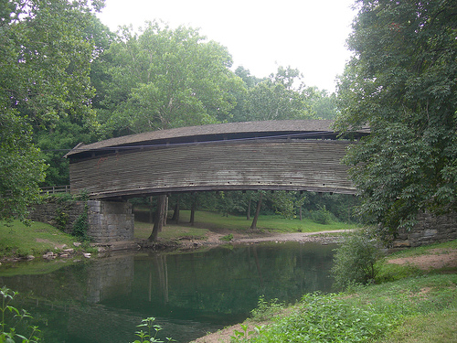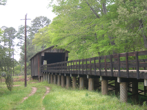 | The struts on this covered bridge near Jackson, MO hold the carvings of many who have traveled through. The earliest date I can decipher on this picture is 1904. |