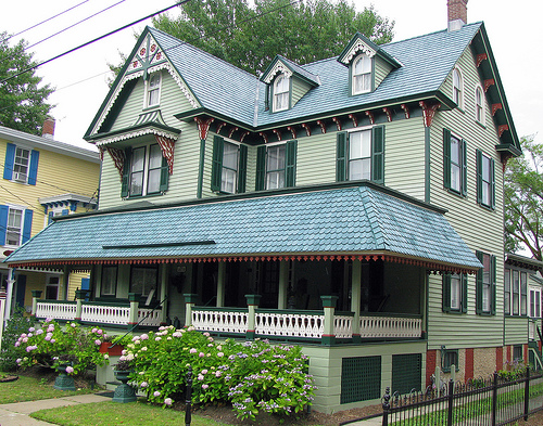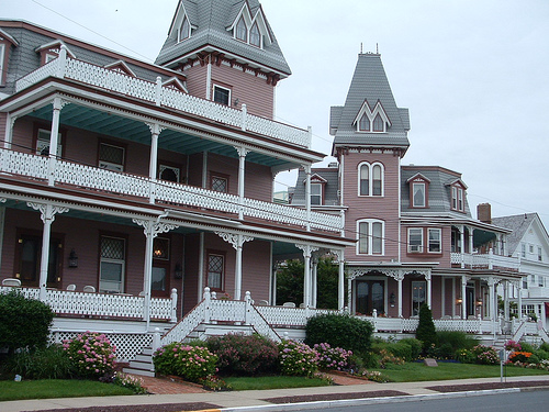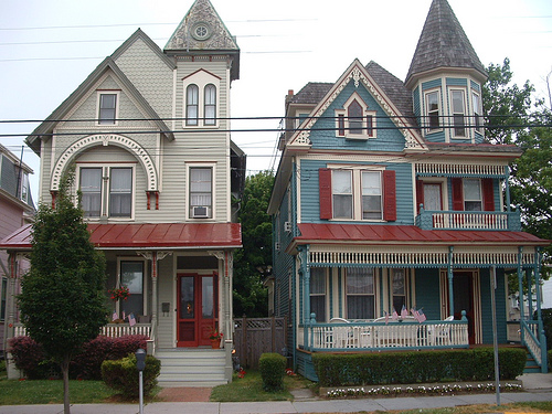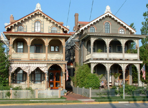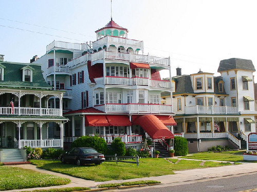 | Cape May, New Jersey is on the southern tip of the Cape May Peninsula, where the Delaware Bay meets the Atlantic Ocean. It began hosting vacationers from Philadelphia in the mid-18th century and is recognized as the oldest seaside resort in the U.S. In 1876, fire destroyed thirty acres of the town center. Replacement homes were almost uniformly of Victorian style. That, plus more recent preservation efforts, has caused Cape May to be known for its large number of well-maintained Victorian houses - the second largest collection of such homes in the U.S., after San Francisco. In 1976, the city of Cape May was officially designated a National Historic Landmark. It's the only city in America wholly designated as such. |