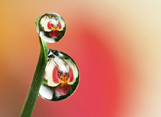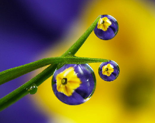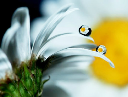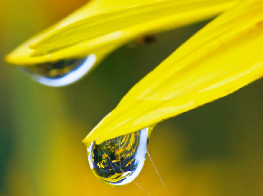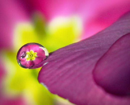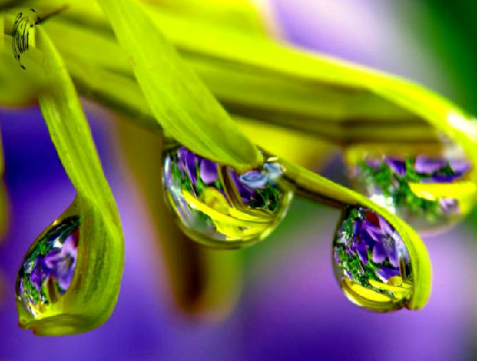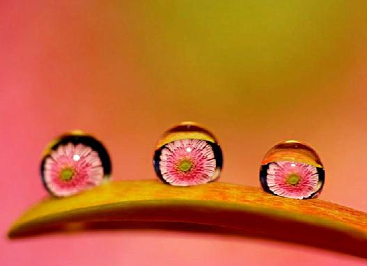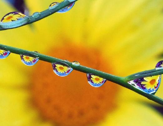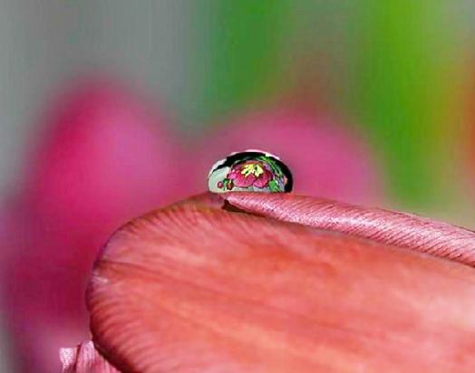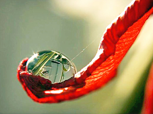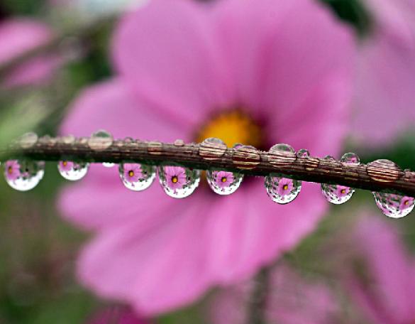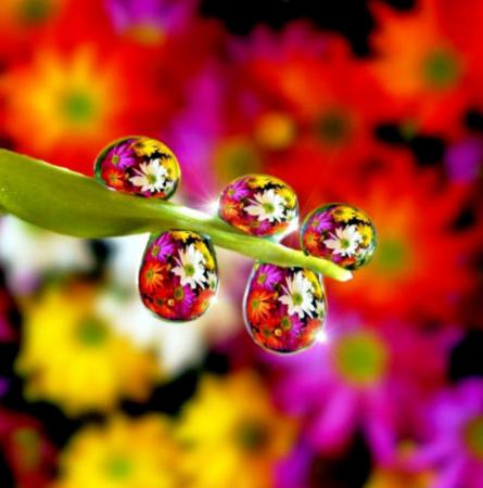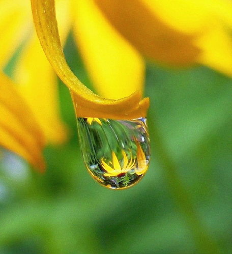 | The photos on this page take us into the garden after a summer rain and bring single raindrops into clear view, as they reflect the flowers nearby...reminding us of the rewards waiting for those who stop to take a closer look. -- Nancy |