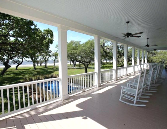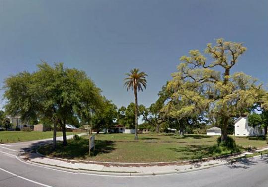 | The photo above was taken in 2005, when the home was being used as a bed and breakfast -- the palm tree remains in its long-accepted place. Sadly, Hurricane Katrina destroyed the historic house, but, as the photo below shows, the famous old palm tree wasn't ready to call it a day. It still stands proudly on the home's former site. |