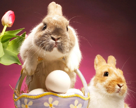 | Here comes Peter Cottontail, Hopping down the bunny trail, Hippity, hoppity, Easter's on the way. Bringing every girl and boy Baskets full of Easter joy, Things to make their Easter bright and gay. He's got jellybeans for Tommy, Colored eggs for sister Sue, There's an orchild for your Mommy And an Easter bonnet, too. Be sure and listen to him say, "Try to do the things you should." Maybe if you're extra good, He'll roll lots of Easter eggs your way. You'll awake on Easter morning And you'll know that he's been there When you find those chocolate bunnies That he's hidden everywhere! Hippity, hoppity...Happy Easter Day! -- Gene Autry |