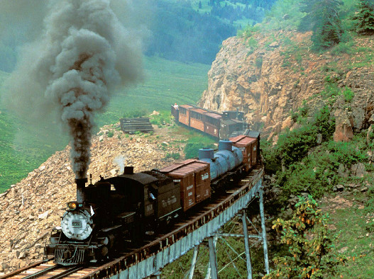 | Above & below: An artifact of the American West, the Cumbres & Toltec Scenic Railroad is the finest example of steam era mountain railroading in North America. Beginning its run in Chama, New Mexico, it uses a track originally laid in 1880. |