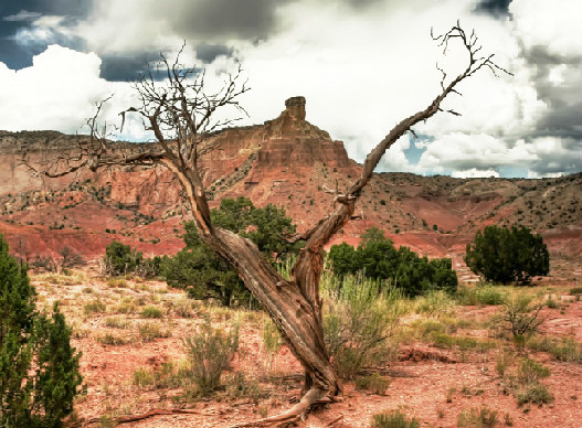 | Well-known artist, Georgia O'Keeffe, lived in New Mexico for many years, part of that time at a retreat known as Ghost Ranch. The area was the subject of many landscapes by Ms. O'Keeffe. The photo directly below was taken there. |