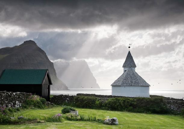| The Faroe Islands are a self-governing territory of the Kingdom of Denmark. They lie about halfway between Scotland and Iceland. At one time, in very distant history, they were under the control of Norway. The earliest settlers were Norse-Gaels, which explains the islands' Nordic culture and language (modern Faroese having evolved from the Old Norse language). The islands are filled with beautiful, dramatic scenery. -- Nancy |