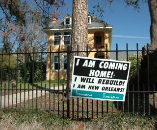 The picture above provided the title for this page. If there's one thing New Orleanians have, it's heart and, as if to make that statement to the world, instead of scrubbing off or painting over the symbols left on every home and building in the city by the rescue workers (indicating how many living or dead people or animals were found inside), the residents of this home covered the symbols with a large pink heart, saying, perhaps, "Our hearts are bigger than this tragedy." And it turns out to be true. The heart and soul of New Orleans was bigger than this tragedy.