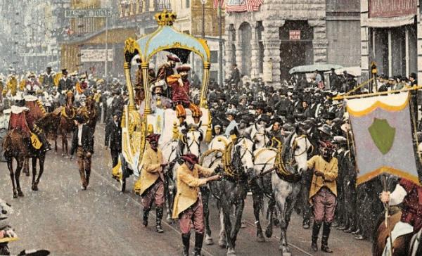 | King Rex arrives to begin his reign on Mardi Gras day: above, 1906; below, 1903 |