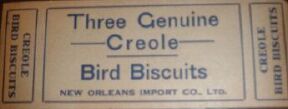 | Creole Bird Biscuits, New Orleans Import Co., 1920's |