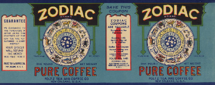 | Above & below, Zodiac Coffee, 1910 |