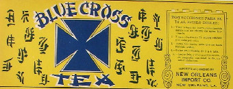 | Above & below, tea from New Orleans Import Co., 1920's |