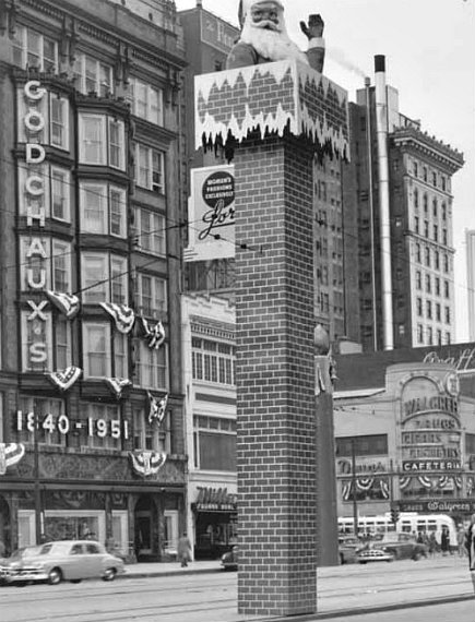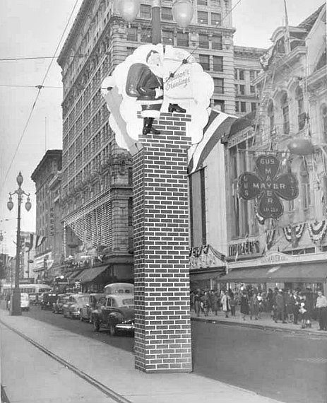 | By today's standards, these Canal Street decorations aren't much to write home about. The interesting scenes are in the background. Many of the stores pictured in these photos are no longer there - gone to suburban malls or gone altogether. But, thanks to these images, we can still take a holiday stroll on 1950's Canal Street. -- Nancy |