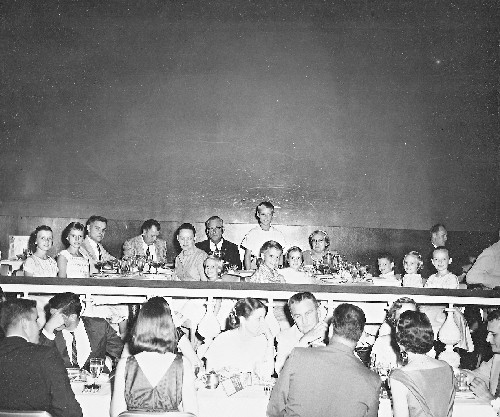 | A family gathering at the Blue Room in 1957; Mike is standing at center. |