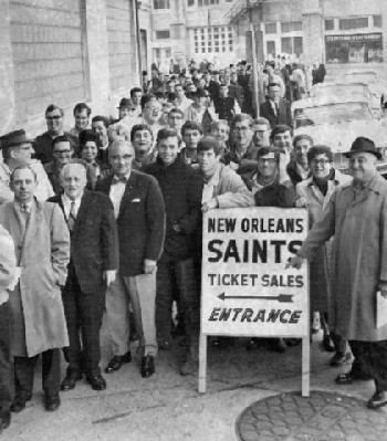 | Fans wait in line at Lee Circle Saints office to buy first tickets for the new franchise, 1967. |