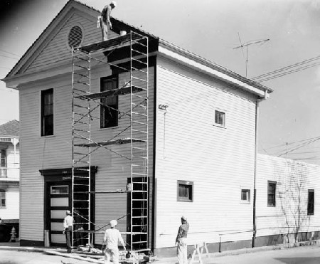 | Re-painting the fire station on St. Bernard Avenue, 1955. |