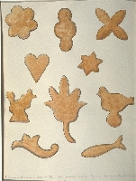 | Like many of New Orleans' Christmas customs, Le Reveillon came from the city's French heritage. In the 1800's, those who attended Midnight Mass on Christmas Eve had fasted from the previous midnight. They emerged from St. Louis Cathedral quite hungry and eagerly headed home to the Reveillon dinner. After all but disappearing in the latter half of the 20th century, Le Reveillon has experienced a new popularity and many restaurants now feature Reveillon menus, usually offered during the entire week before Christmas. I understand that Le Reveillon has never lost its popularity in France and the traditional Christmas Eve dinner is held in every part of that country; and, also, in the French speaking parts of Canada. (The word 'reveillon' means 'awakening'---as in a symbolic awakening to the meaning of Christ's birth.) A typical Reveillon dinner included 4 to 7 courses and the menu traditionally featured daube glace, roast goose or pheasant, oyster gumbo, egg dishes, sweetbreads, crystallized fruits, Buche de Noel (a cake in the shape of a log to resemble the birch log burned in the fireplace on Christmas Eve), brandy, fresh egg nog and dark roast coffee. Above are cookies baked in traditional Reveillon shapes. |