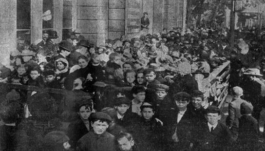 | Distribution of Christmas Gifts by the Times-Democrat Doll & Toy Fund, December, 1907, Washington Artillery Hall, St. Charles Avenue |