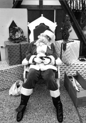 | In most places, Santa doesn't take a nap til he gets back home. In New Orleans, all the good food - crawfish etouffee, po-boys, beignets - makes Santa too sleepy to wait; 1981. |