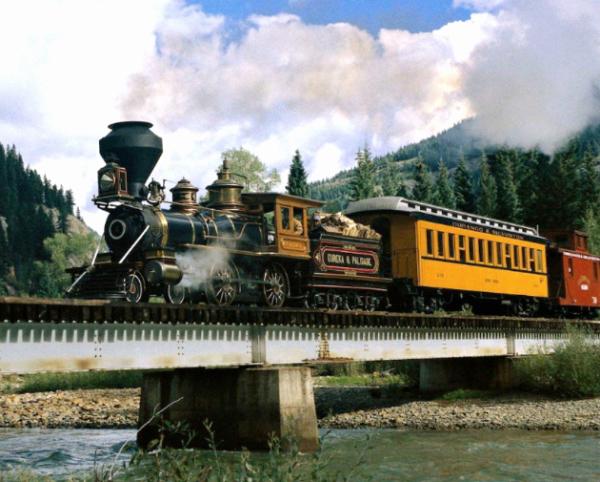 | Not by car and not by plane, Give me instead an old-fashioned train - Not a sterile, modern thing, But an engine built when train was king: A black locomotive, trailing steam, With steel and brass shined to a gleam, The kind g-grandpa used to ride When he rolled across the countryside. -- Nancy Brister |