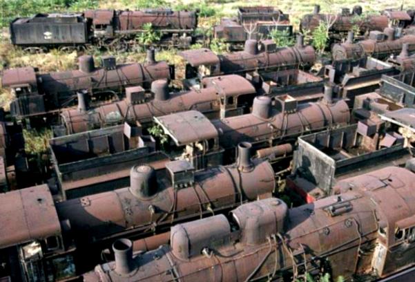 | The only thing sadder than an abandoned set of railroad tracks is a boneyard of rusting locomotives. I don't wax nostalgic over a junkyard filled with rusted out washers, driers and refrigerators. But the sight of old steam locomotives - once proud and powerful, the moving force of our country - sitting forlornly, waiting to crumble to dust, very nearly brings tears to my eyes. -- Walter Davies |