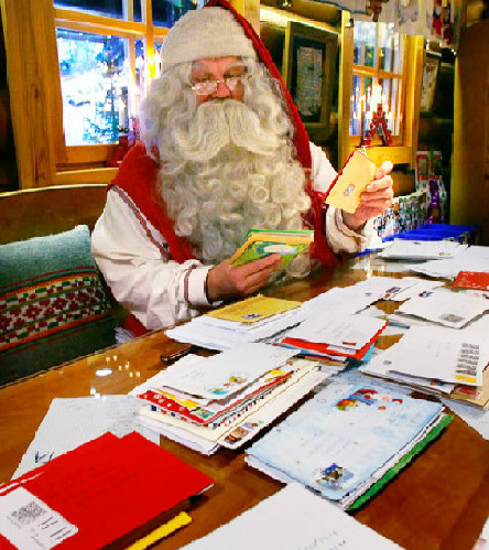 | Mail from more than 200 countries pours into the Santa Claus Village post office -- 15.5 million letters since 1985. Santa and the office elves attempt to answer every letter. |