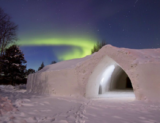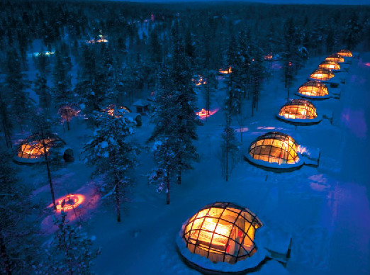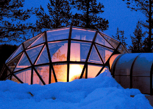 | Above & below, Kakslauttanen Igloo Village, near Saariselka, Lapland, where -- if the timing is right -- you can view an amazing Aurora Borealis display through the glass dome of your igloo. |