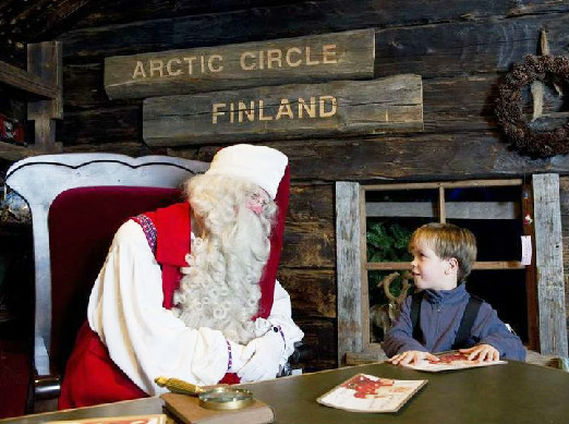 | In fact, you're very welcome to visit Santa any time, in what many consider to be his true home, on the Arctic Circle's border in Lapland, Finland. Mrs. Claus will serve you cocoa, the elves will give you a tour of the workshop and you can read some of the letters Santa receives each holiday season from hopeful children all around the world. |