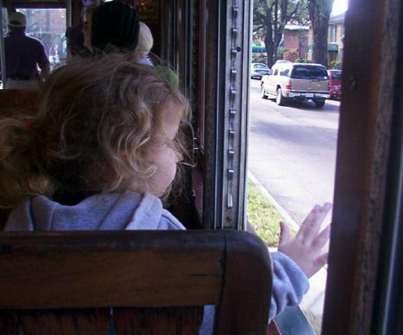 | The uprooted trees and flood waters did extensive damage to the historic St. Charles streetcar line. Dedicated men and women have been working tirelessly ever since to bring the streetcars home to St. Charles Avenue. The old street just wasn't the same without the rumble of the motor and the clang of the bell. But, on the first of November, 2007, the streetcars were able to become operational once more. New Orleanians are proud and grateful to have their streetcars in service again! There's no doubt that seeing and hearing the old streetcars on St. Charles once again has buoyed the spirits of the residents. Many things in the city that people used to take for granted as things that would always be with us are now held close in affection by the residents of New Orleans and those who love the city. Since they have been out of commission for more than two years, my little 3 year old granddaughter, Sarah, had never taken a ride on the St. Charles streetcar. We decided (Sarah and I) that it was long overdue. So, off we went to meet my good friend, Mary, and enjoy a lovely ride on a beautiful New Orleans day in early December. For Mary and me, it was nostalgic, a time to remember the streetcar rides of our youth...to the Milton Latter Library...to Saturday afternoon movies at the Saenger or Loew's Theaters...to shop on Canal Street...and so many other trips up and down the line. But, for Sarah, it was an excellent adventure. She generally gets bored pretty easily and I didn't for a moment think the trip would hold her spellbound all the way downtown and then for a return trip. But it did. With a smile on her face and the breeze from the open window blowing through her hair, she sat totally intrigued with the ride, the scenery, the passing motorists and pedestrians---who, happy to see the streetcar again, returned her exuberant waves with exuberance of their own. The mesmerizing motor under the floorboards rumbling with a sound and vibration all its own, the soft lurches of the stops and starts, and the clang of the trolley bell, all having the same effect on Sarah that they've had on generations of New Orleans children. As I held my arm around her, making sure she didn't lean too far out of the window--you remember your mother's warning, "You'll hit your head on a post!"--the years melted away and I could've sworn it was my son, Jim, and we were heading down Carrollton to Oak Street to shop at Woolworth's and have a burger at their counter, then, before catching the streetcar home, a stop at McKenzie's to secure some of his prized "turtles" for a special treat. I guess maybe a streetcar ride has that effect on some of us...the magical ability to launch us into the past, while we're still fully enjoying every moment of the present. -- Nancy |