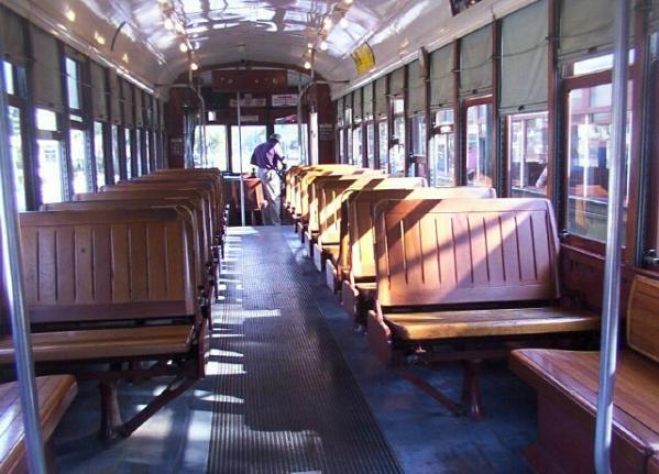 | This was at Canal Street after all the passengers got off, before we started our return trip. The motorman was a great guy, he let us stay on and take pictures and even held up the streetcar once while Mary rushed outside to take "one last" picture. I noticed that there were at least 3 other people taking photos, too. The man behind us said we were adrift in "Kodak moments." Anyway, the motorman was very kind, a goodwill ambassador, for sure. |