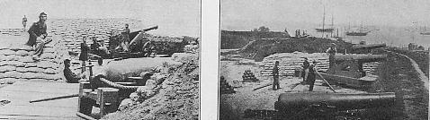 Guns the union lost and recovered. A two-gun Confederate battery in the entrenchments south of Yorktown. The near gun is a 32-pounder Navy; the far one, a 24-pounder siege-piece. More than 3,000 pieces of Naval ordnance fell into the hands of the Confederates early in the war, through the ill-advised and hasty abandonment of Norfolk Navy Yard by the Federals. Many of these guns did service at yorktown and subsequently on the James River against the Union. |