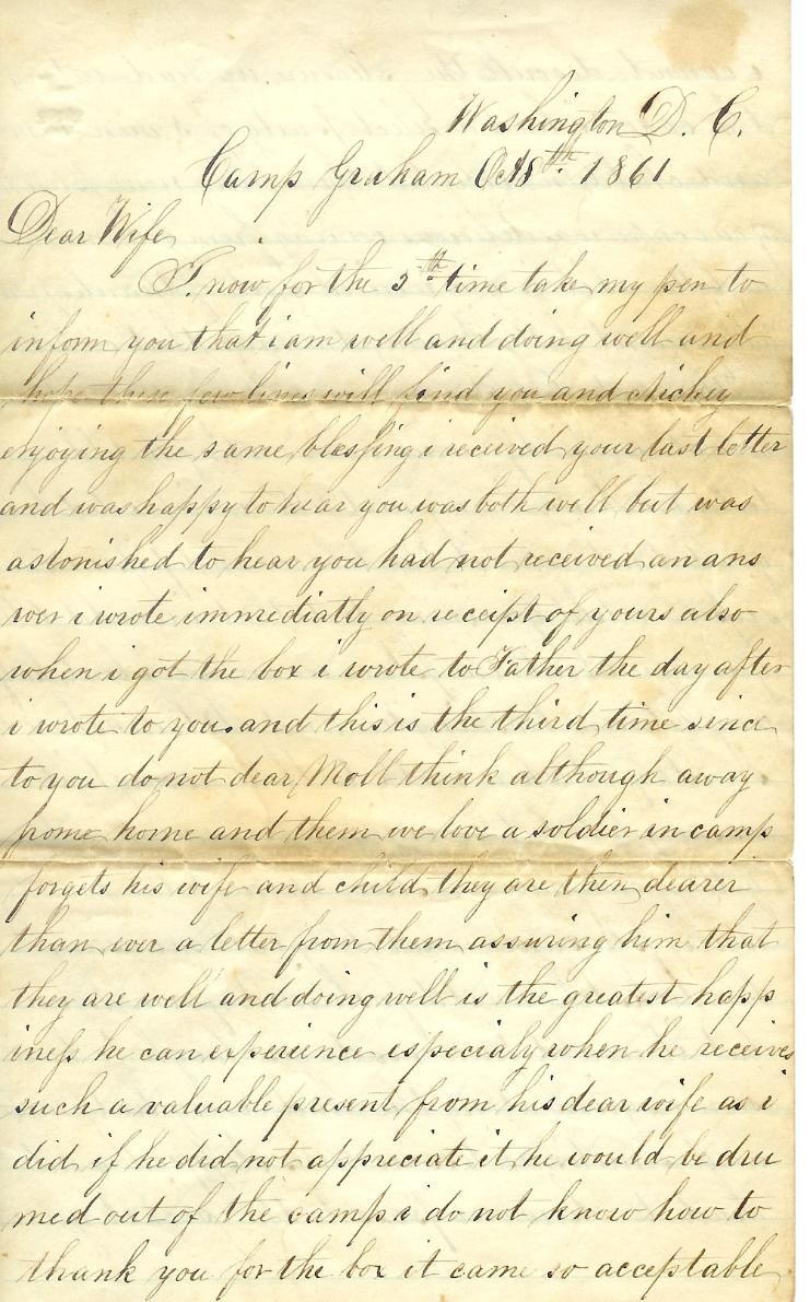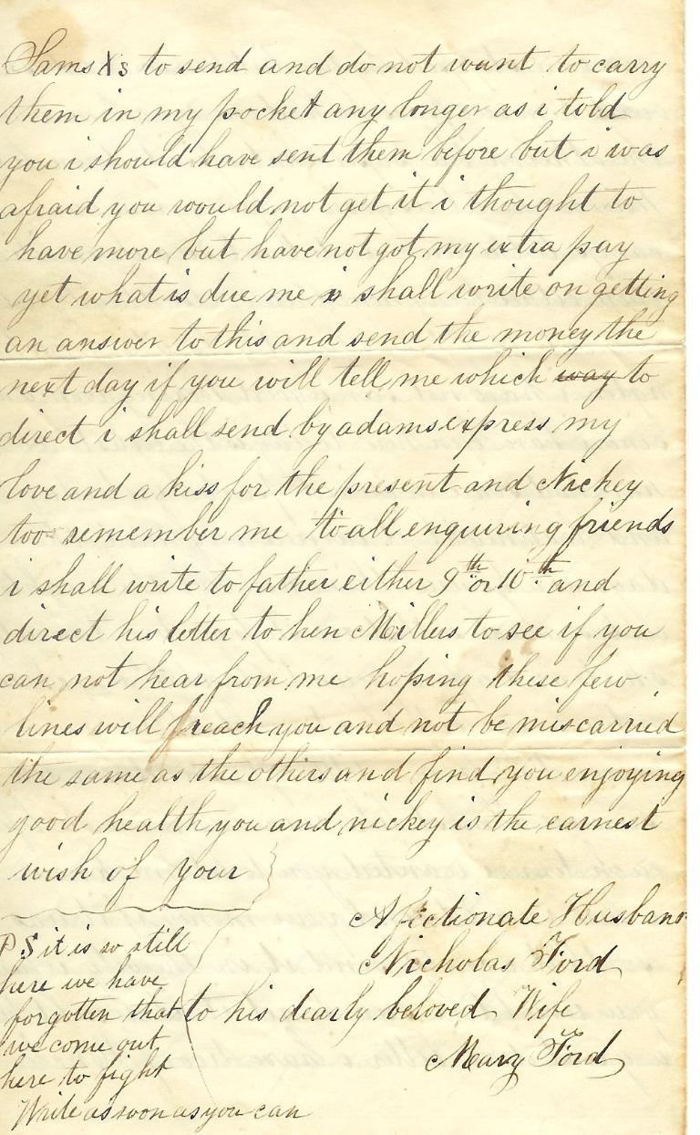 Letter from Pvt. Nicholas Ford, 67th Infantry, NY, to his wife, Mary, October, 1861 |