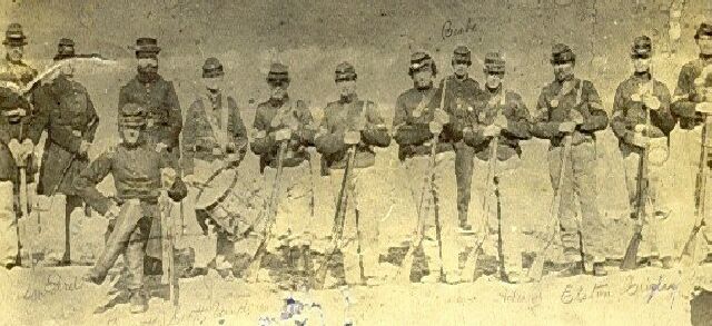 "38th New York Volunteers enrolled at Horseheads, mustered in at east NY on June 8, 1861. They became Company I of 38th NY Volunteers. The following names are from the muster-in rolls: Calvin S. Dewitt, Capt. Charles E. Barber, 1st Lt. Albert E. Terrell, Ensign William B. Strait, 1st Sgt. Arthur T. Pickett, Sgt. Walter Scott, Sgt. George W. Mallory, Sgt. Henry H. Worden, Corporal Charles H. Cooper, Corporal Henry Adams, Corporal George L. VanDusen - Musician, Lewis Simons - Musician." |
