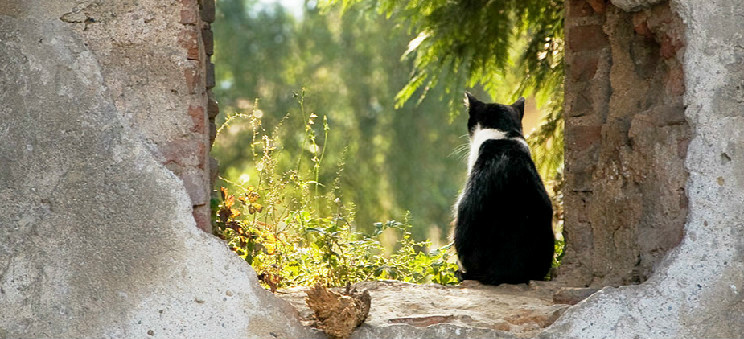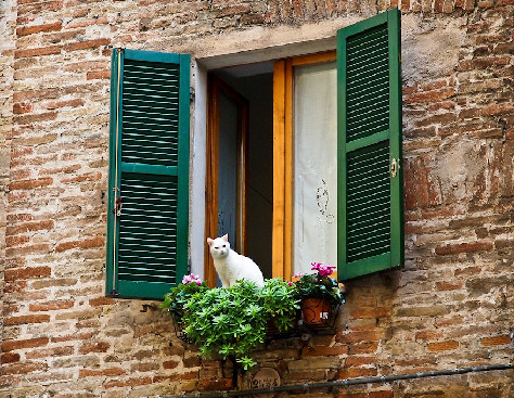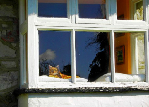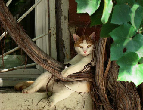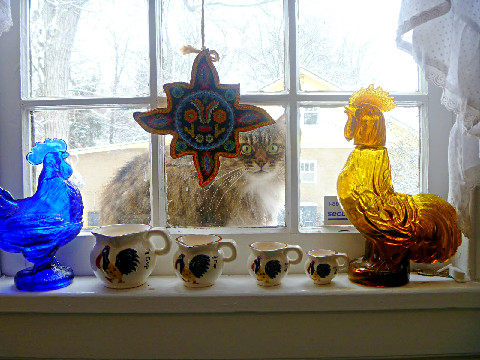 | When I started putting this page together, I was thinking about those lovely oaks and about windows with nice, calming views. (But, then, cats kept appearing, so I finally turned the page over the them!) |