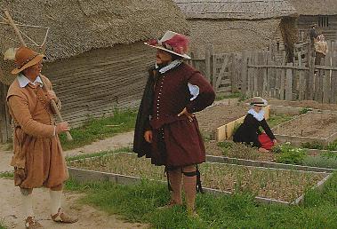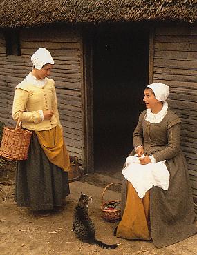 The following images are from the Plimoth Plantation. Interpreters portraying settlers of 1627 Plymouth Colony go about the daily chores of the season. Dressed in reproduction period clothing and speaking the dialect of their character's home region, interpreters take on the roles of actual inhabitants of the colony. |