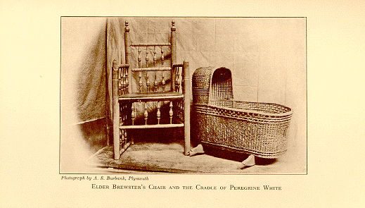 "Elder Brewster's Chair and Cradle of Peregrine White" |