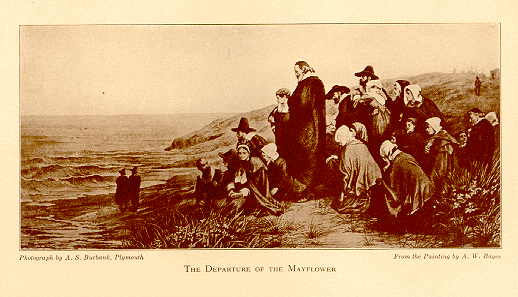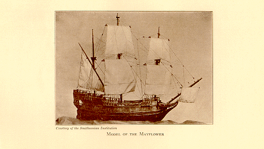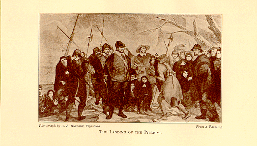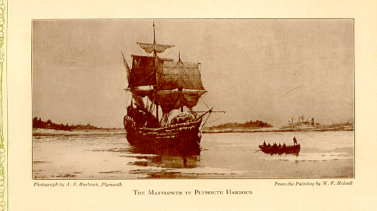 The illustrations on this page are from "The Romantic Story of the Mayflower Pilgrims" by Albert C. Addison, published in 1911 |