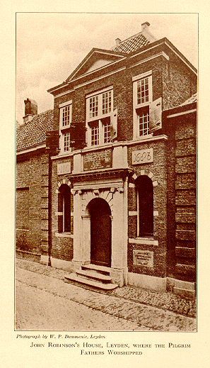 "John Robinson's House in Leyden, where the Pilgrims worshipped while they were in Holland" |